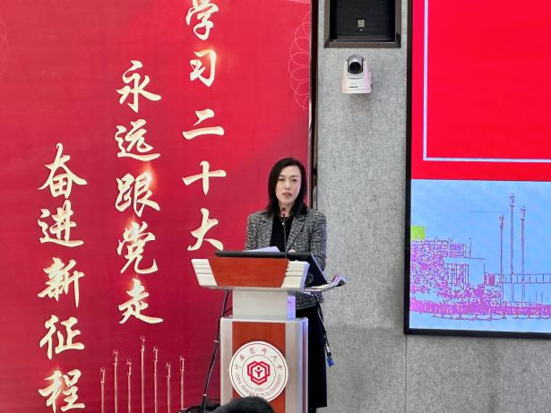 江阴天江药业有限公司党委副书记杨鹭颖介绍了企业发展情况,表示天江药业将坚定支持药学教育事业发展,与竞彩比分 携手开启产教融合发展的新局面,共同推动中医药事业高质量发展。她勉励同学们勇担时代责任,练就过硬本领,砥砺奋斗前行,与天江药业一起推动中医药传承创新发展。