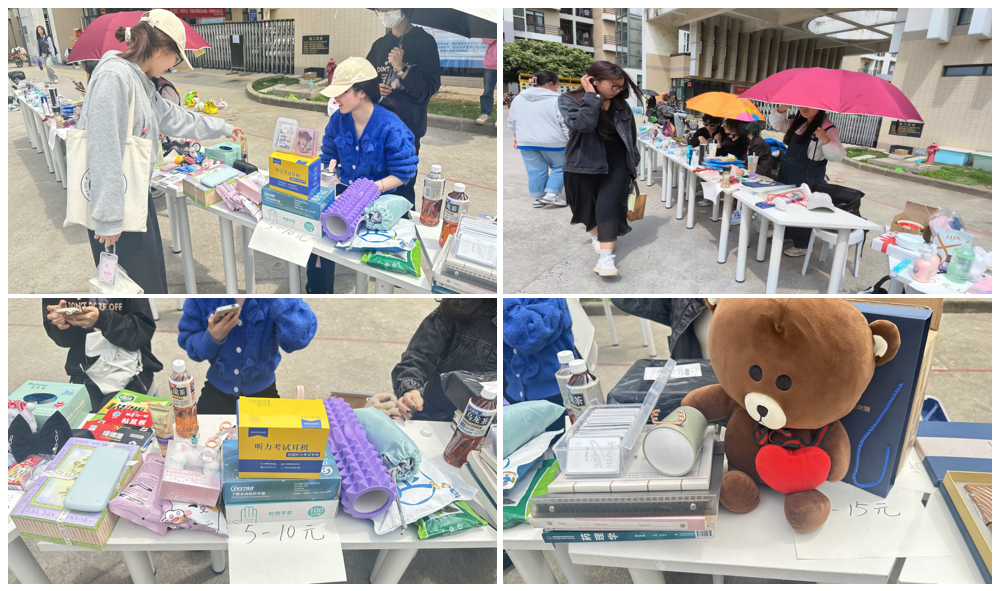 在欢乐的氛围中,“盲盒市场”正式开市。学生们把闲置的物品带到“盲盒市场”进行低价售卖,生活用品、考研资料、教辅书籍、电子产品、护肤品、化妆品等各类二手商品应有尽有,买卖双方互利共赢,买方得到需要的物品,卖方则将闲置物品转卖给有需要的人,延续了闲置物品的价值。