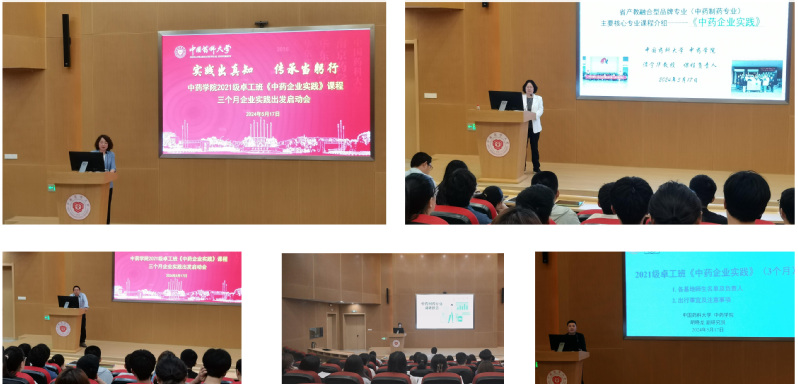 为提升中药制药卓工班学生的自主性、实践性和研究性学习的综合能力,加强中药制药省产教融合型品牌专业建设,深化中药制药领域创新研发和生产技术改造方面的复合型创新人才培养,近日,竞彩比分 在经管文楼111 报告厅举行了以“中药传承与创新、中药制造与智造”为主题的《中药企业实践》课程出征仪式。竞彩比分 副院长殷志琦教授、课程负责人谭宁华教授、相关课程教师、辅导员及2021级中药制药卓工班同学参会,仪式由中药制药系教学副主任张春磊主持。