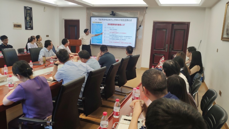 齐炼文副校长以“弘扬教育家和科学家精神,加强师德师风建设”为题,结合自身政治学习和教学科研的心得体会,深入解读了习近平总书记关于教育、科技、人才的重要论述。他结合学校实际,深入浅出地解读了论述的丰富内涵和深远意义。齐炼文副校长在主旨报告中特别强调了弘扬教育家和科学家精神的重要性。他指出,教育家精神是教育事业发展的灵魂和动力,是培育时代新人的关键所在;科学家精神是科技创新的源泉和动力,高校教师要学习科学家的探索精神、创新精神和奉献精神,不断推动学校科技创新工作取得新进展,为中医药高质量发展贡献力量。最后,齐炼文副校长结合具体案例,解读了新时代高校教师职业行为十项准则的重要意义,要求各位老师要将十项准则内化于心,外化于行,使之成为日常工作的准则和指南,以高尚的师德,赢得社会的尊重和信任。