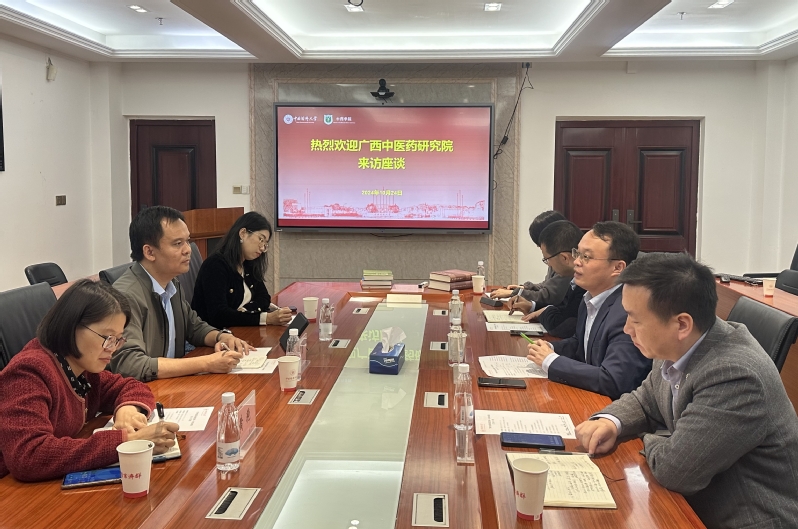 会上,许风国院长对广西中医药研究院副院长邱宏聪一行来访表示热烈欢迎,并介绍了校院基本情况、学院学科建设、教学科研等方面的情况。表示希望与广西中医药研究院在人才培养、科研项目合作、学术资源共享等方面加强合作。