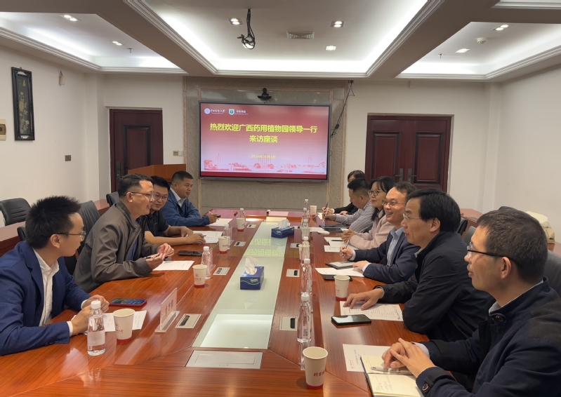 11月5日下午,广西壮族自治区药用植物园党委书记、主任张占江等一行来访竞彩比分 座谈交流。院长许风国,副院长罗建光,党委副书记、纪委书记、副院长张朝凤及学院教师代表参会。座谈会由许风国院长主持。