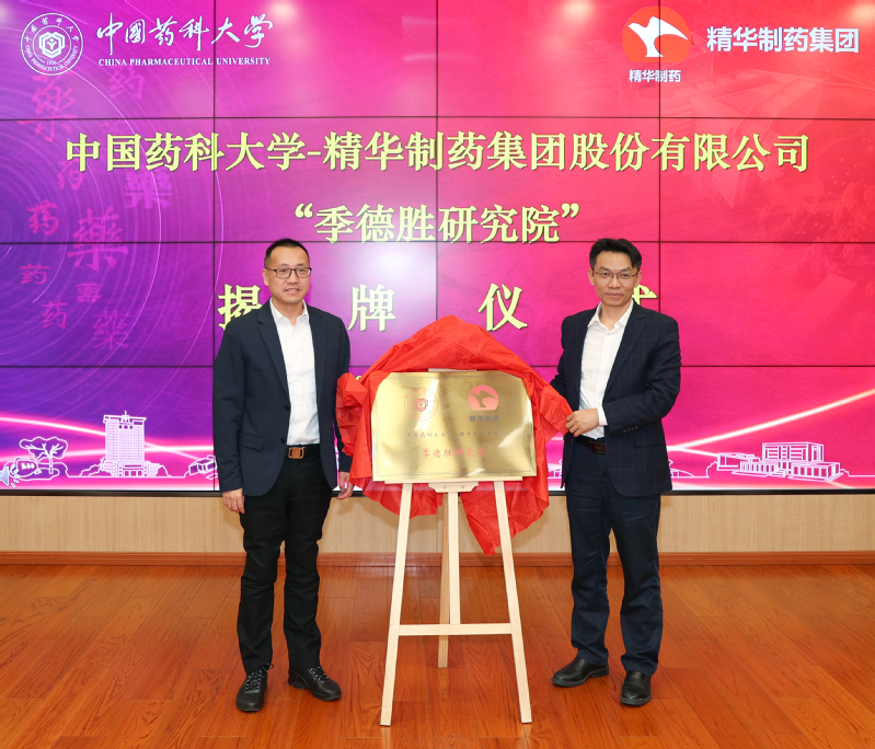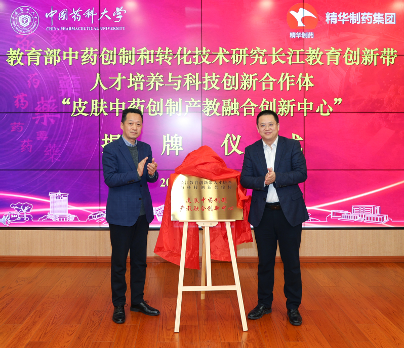 签约仪式上,精华制药集团股份有限公司总工、研究管理院院长周云中与我校竞彩比分 院长许风国共同签署了战略合作协议。校长郝海平和精华制药董事长尹红宇共同为“中国药科大学-精华制药集团股份有限公司‘季德胜研究院’”揭牌。我校副校长姚和权与江苏省卫健委二级巡视员、中医科教处处长石志宇共同为“教育部中药创制和转化技术研究长江教育创新带人才培养与科技创新合作体‘皮肤中药创制产教融合创新中心’”揭牌。