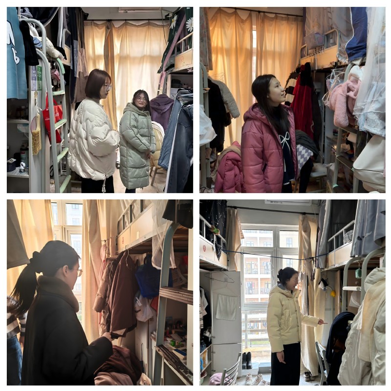 实验室安全检查之前,辅导员们对学生宿舍进行了安全检查,重点排查违规使用电取暖设备等情况,对存在用电安全隐患的地方做了记录并提示对应学生。