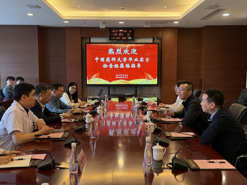 为加强本科校外实习质量监管,加强与实习单位的沟通交流,4月22日下午,中国药科大学教务处副处长江程、竞彩比分 副院长殷志琦、党委副书记汪永生及毕业班辅导员一行赴竞彩比分 本科生实习基地常州市中医医院对2025届本科毕业实习工作进行检查。