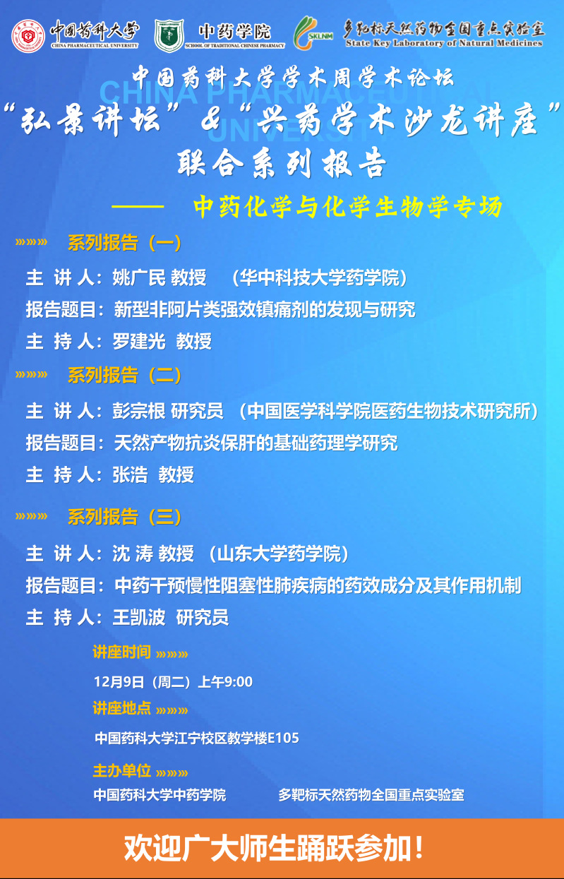 竞彩比分 第二十七期“弘景讲坛”暨全国重点实验室兴药学术沙龙第二十一期——中药化学与化学生物学专场系列报告