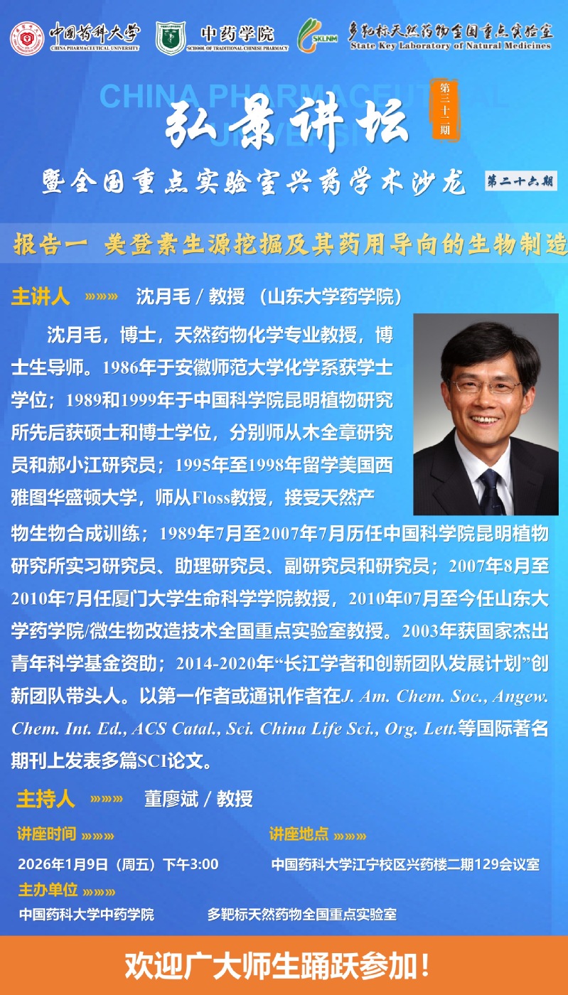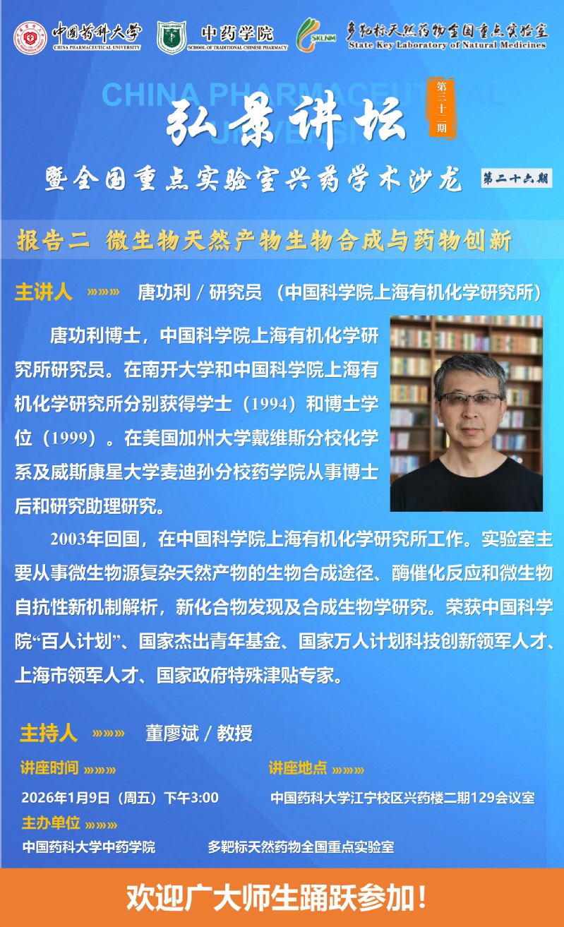 竞彩比分 第三十二期“弘景讲坛”暨全国重点实验室兴药学术沙龙第二十六期:山东大学沈月毛教授、中国科学院上海有机化学研究所唐功利研究员报告