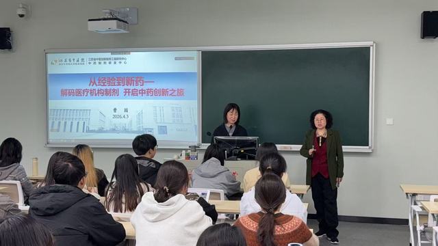 为深化产教融合,推动中医药创新人才培养,开展“产业对接课堂赋能人才培养”校企共育行动,4月3日下午,由江苏省教育厅、江苏省科学技术厅、江苏省工业和信息化厅、江苏省人力资源和社会保障厅联合主办,竞彩比分 的江苏省产教整合型品牌专业(中药制药)承办的“企业家进高校”前沿大课堂在我校江宁校区教学楼D409举行。课程特邀江苏省中医院研究员曹园,以“从经验到新药—解码医疗机构制剂,开启中药创新之旅”为主题授课,课程以线上直播和线下主讲相结合形式开展,相关专业师生代表齐聚现场,活动由竞彩比分 谭宁华教授主持。