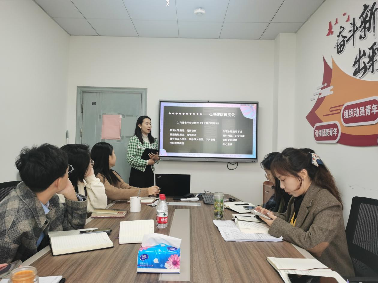 此次研讨会传达了校心理健康调度会的会议精神,强调提高政治站位、压紧压实责任意识、进一步完善心理工作机制。再一次认真学习了《省教育厅关于加强大学生心理健康教育管理工作的通知》,不断增强心理健康教育、心理危机预防、心理危机干预等方面工作的系统性、专业性。随后,竞彩比分 心理辅导员丁祎铭以《“话匣子”怎么开》为主题,提出在与学生谈心谈话过程中应该关注学生情绪变化、无差别的尊重学生、无条件积极关怀学生,并分享了谈心谈话技巧,帮助辅导员更好的开展相关工作。