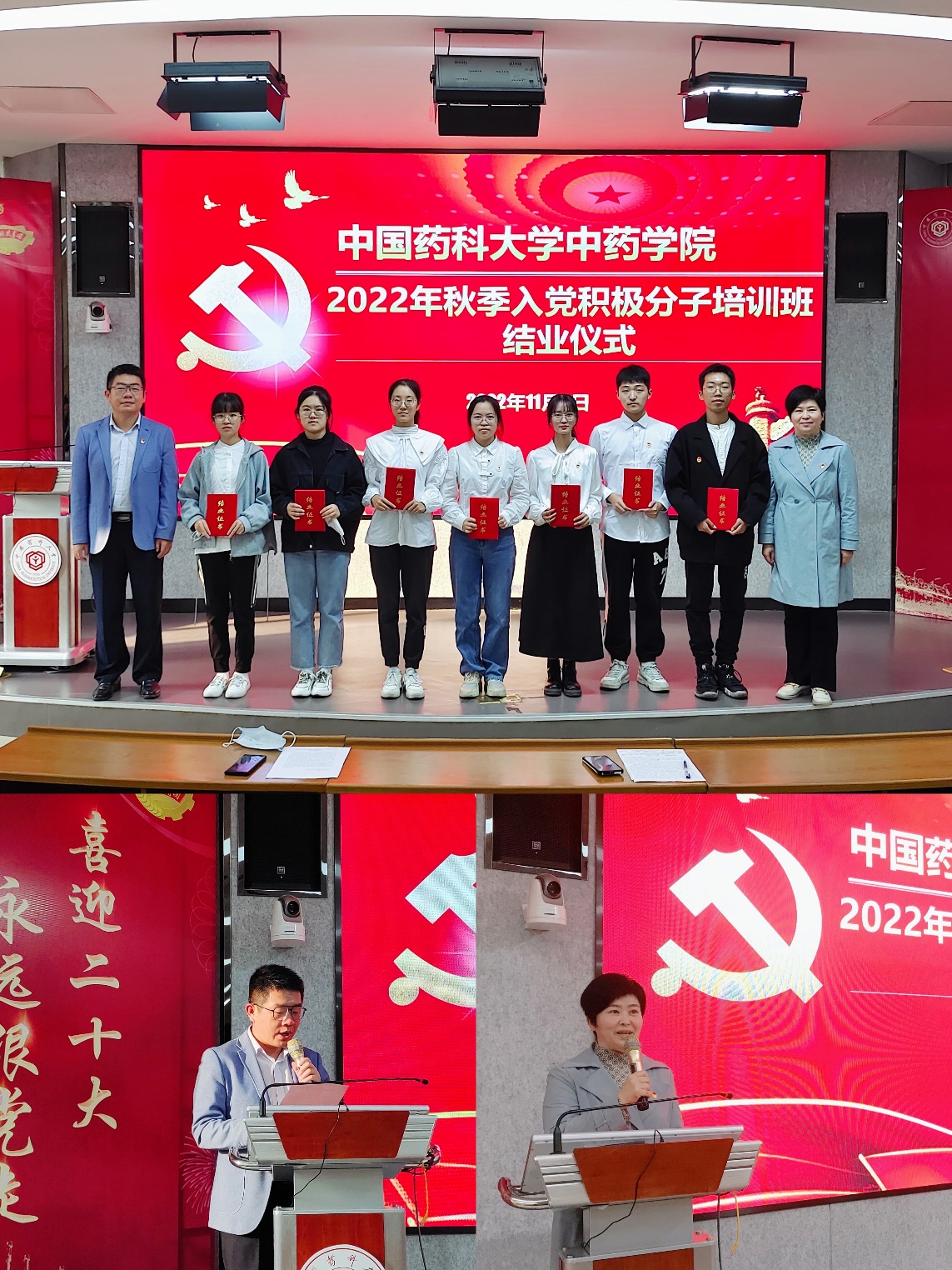 11月9日,竞彩比分 党委在江宁校区教学楼E105举行2022年秋季入党积极分子培训班结业仪式,竞彩比分 党委书记赵健、党委副书记徐志成、学院组织员、辅导员和学员参加结业仪式。结业仪式由竞彩比分 组织员李卓清主持。