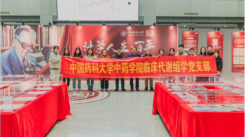 11月21日,时逢我国著名生药学家和药学教育家徐国钧院士诞辰100周年之际,竞彩比分 临床代谢组学党支部全体成员在江宁校区图书馆二楼中庭集中参观了“科学人生·百年”——徐国钧院士风采展。