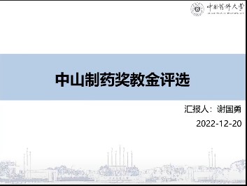 12月20日上午,竞彩比分 举行2022年度“中山制药卓越奖教金”线上答辩评审。邀请企业领导、教务处领导、校院教学督导、院外专家担任此次会议评审会评委。评审会由竞彩比分 副院长殷志琦主持。