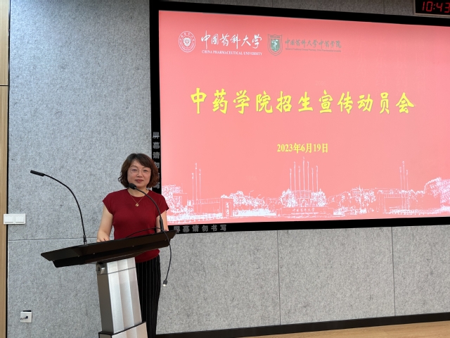 会议首先由校招生办主任章巍主任做了主题为《药大招生,你我同行》的培训。章主任详细介绍了我校2023年招生整体政策、在苏计划、今年特色专业开设情况;同时针对历年学生家长关心的主要问题进行了解答,为本年度参与招生的师生顺利开展招生工作奠定了扎实的基础。殷志琦副院长结合章主任的讲解,针对学院今年招生工作做了进一步安排部署,她指出今年作为学校高质量发展的开局之年,提升招生工作质量和成效对推动学校人才培养高质量发展具有重要意义,希望大家在招生过程克服困难,以更加积极主动的态度、昂扬向上的斗志做好招宣工作,共绘学校招生新蓝图。
