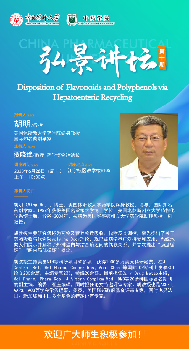 竞彩比分 第十期“弘景讲坛”:美国休斯敦大学药学院终身教授、国际知名药剂学家胡明教授学术报告