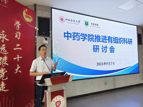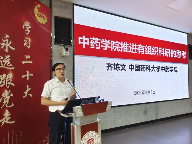 会上,竞彩比分 院长齐炼文做《竞彩比分 推进有组织科研的思考》的主题报告。他首先介绍了学院2023年科研进展和人才队伍建设情况,全面阐述了有组织科研提出背景及学科交叉科研范式变迁,系统分析了中药研究的痛点、难点和堵点,并就竞彩比分 如何推进有组织科研提出思路和举措。他强调,学院的科研工作要紧紧围绕“四个面向”,坚持推进多学科交叉融合,主动服务国家重大战略需求和产业发展,集中力量解决国家核心技术难题、重大科学问题,为中医药高水平科技自立自强贡献力量。